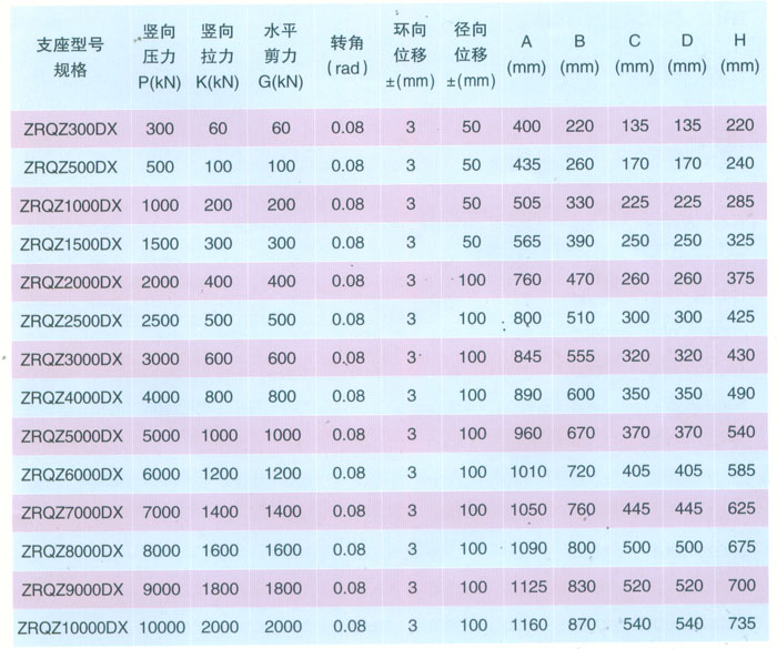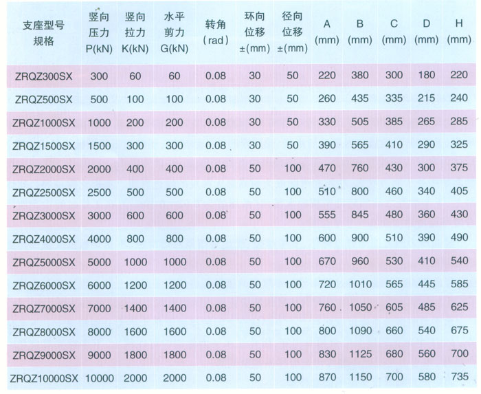 球鉸支座參數(shù)表 表2