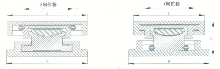 支座中的相對(duì)滑移部件之間,采用目前世界上摩擦系數(shù)最低的聚四氟乙烯滑板和不銹鋼板相隔,充分減小了摩擦阻力,使各部分之間的運(yùn)動(dòng)流暢,避免爬行現(xiàn)象的產(chǎn)生。本類支座通過球面聚四氟乙烯滑板上部構(gòu)件沿著球面相對(duì)于下部構(gòu)件的轉(zhuǎn)動(dòng)實(shí)現(xiàn)轉(zhuǎn)角(常用值為0.02rad),在工作過程中支座沿著滑移箱滑道滑動(dòng)實(shí)現(xiàn)水平位移。